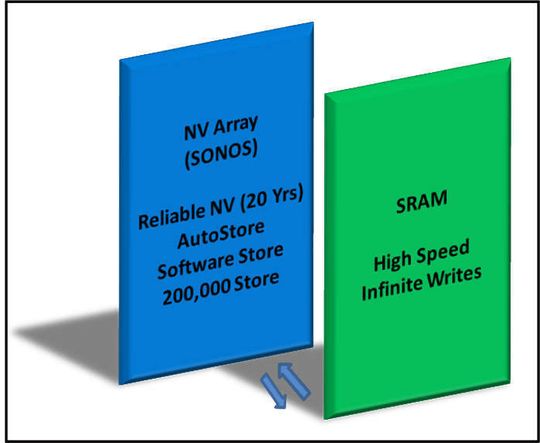 Die integrierten, auf SONOS-Technologie basierenden nicht flüchtigen Elemente sorgen für eine zuverlässige Datenspeicherung, ohne dass eine Batterie benötigt wird, um den SRAM-Inhalt bei einem Stromausfall zu sichern. Die Dauerhaltbarkeit der nvSRAMs wird an der Zahl der Stromausfälle gemessen, denn zu einem Schreibtransfer an die nicht flüchtigen Elemente kommt es nur, wenn die Stromversorgung des Systems tatsächlich ausfällt.