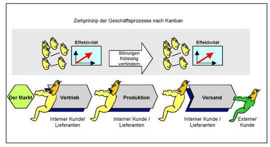 Das Prozessmanagement des Drückprinzips kennt kein internes Kunden-Lieferanten-Verhältnis, zumindest lebt es nicht. Und damit fehlen die wichtigsten Voraussetzungen für Effizienz und Effektivität: Das frühzeitige aktive Verhindern von Störungen.
