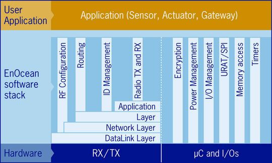 Die API enthält nebem dem Protokollstack für die EnOcean-Funkübertragung auch Funktionen zur Kontrolle des Energiemanagements, zur Timer-Steuerung oder zum Zugriff auf die beiden Arbeitsspeicher.