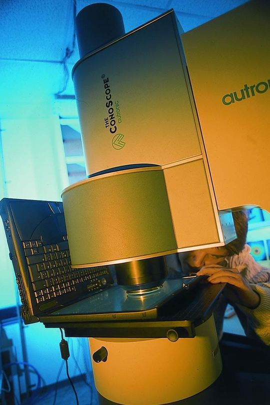 Die Messungen wurden mit dem von autronic-Melchers entwickelten Cono-Scope (Bild 1) durchgeführt. Dieses Messgerät stellt mit einer einzigen Messung alle Leuchtdichtewerte für den Blickrichtungskegel über dem Messpunkt fest. Somit entfällt die mechanische Positionierung des Detektors in unterschiedlichen Winkeln.