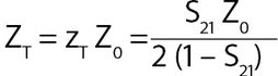 Die mit dem Netzwerkanalysator ermittelten S-Parameter der Messanordnung dienen zur Berechnung des Kopplungswiderstandes ZT. Dies geschieht unter Berücksichtigung der Impedanz des Messsystems Z0 gemäß Gleichung 1.