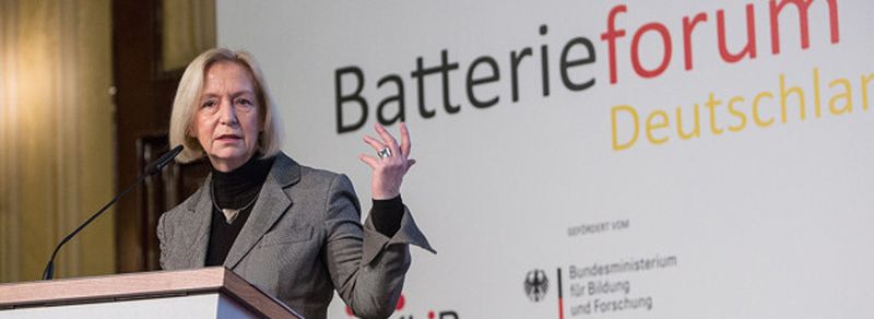 In ihrem Grußwort zum dritten Batterieforum Deutschland in Berlin betonte die Bundesministerin für Bildung und Forschung Prof. Dr. Johanna Wanka, dass eine deutsche Batteriezellfertigung ein wesentliches Element für eine erfolgreiche Umsetzung der Elektromobilität und der Energiewende ist.