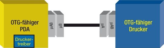 Wie erläutert, wird durch die Kabelrichtung festgelegt, welche Rolle die OTG-Geräte beim Anschließen einnehmen. Zusätzlich definiert das HNP (Host Negotiation Protocol) ein Verfahren zur dynamischen Umschaltung zwischen Host- und Peripherierolle.