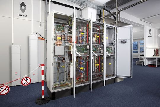 Parallel zu der Absorberkabine hat Mooser einen Prüfstand für elektrische Tests an Hochvoltkomponenten aufgebaut. Auf diesem Prüfstand wird bei HV-Geräten die Störfestigkeit gegen Restwechselspannungen, Dips und Drops und andere Eventualitäten geprüft. Diese Tests sind auch in einem 1000-Liter-Temperaturschrank mit einem Temperaturbereich von —45 bis 185 °C durchführbar.