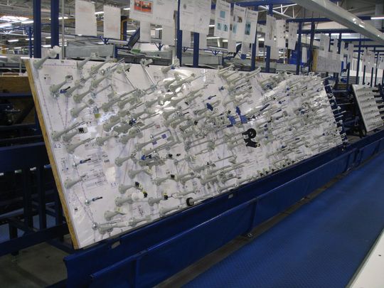 Bei der Kabelbaumherstellung sind nicht selten mehrere hundert Bauelemente pro Brett zu kontrollieren. Für jede Verbindung muss zwischen Prüfeinheit und Steckkarte eine elektrische Verbindung bestehen, die dokumentiert beziehungsweise bei Änderungen gepflegt werden muss. Durch den Einsatz drahtloser Funksensoren sind die Prüfeinheiten nicht nur flexibler, sondern auch transparenter. Die einzelnen Prüfkomponenten sind schnell und einfach austauschbar, ohne jedoch die gesamte Haltevorrichtung ändern zu müssen. Das System ist in ein PC-gestütztes Netzwerk integriert und mit der herkömmlichen Server-Technik bedienbar. Ein Kabelbaumhersteller kann mit der Verwendung verdrahtungsfreier Kabelbaumprüfung nicht nur seine Produktionszeit, sondern auch die Produktionskosten erheblich senken.