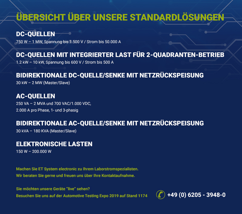 Der Countdown läuft: nur noch wenige Tage, dann startet die Automotive Testing Expo 2019 in Stuttgart. Auf der weltweit größten Messe für Prüf- und Validierungstechnologien sowie -services für komplette Fahrzeuge und Komponenten vom 21.05.2019 bis 23.05.2019 ist ET System electronic wieder mit Produktneuheiten vertreten.