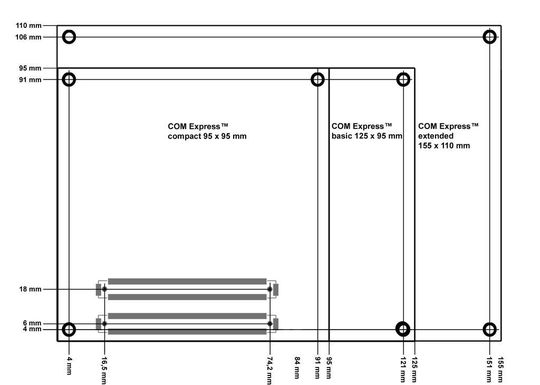 In diesem Sinne lässt der COM-Express-COM.0-Rev.-2.0-Standard Embedded-Entwickler ein weites Stück in die Zukunft blicken. Wenn der aktuelle PICMG Design Guide dann schnell an die neuen Vorgaben angepasst wird, schafft das weiteres Vertrauen. Neu ist der Formfaktor COM Express compact, der mit 95 mm x 95 mm den Weg für kompakte Designs innerhalb der COM-Express-Spezifikation öffnet.