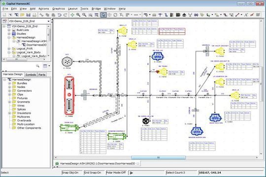 Im weiterführenden Prozess kann der Anwender auf Funktionen wie Power/Ground-Analyse, Sneakpath-Analyse, FMEA und Transienten-Simulation zurückgreifen und darüber hinaus die automatisiert generierten Kabelbaumdiagramme weiter detaillieren, indem z.B. mechanische Komponenten wie Tapes, Clips und Tüllen hinzugefügt werden (Bild 7).