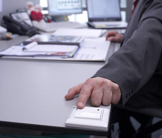 Zur Bedienung von Beleuchtung und Jalousien entschied sich die Betriebstechnik für frei platzierbare, batterielose Funk-Taster (Bild 3), die einen sensiblen Umgang mit Energie unterstützen. Viele Maßnahmen führen nachweislich zu Einspareffekten. Zum Beispiel die freie Kühlung auf dem Dach des Gebäudes. Weil im Winter keine Kältemaschinen zur Erzeugung von Kaltwasser benötigt werden, lassen sich pro Tag 340 kWh einsparen.