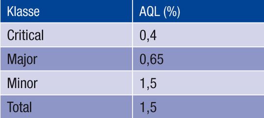 Basierend auf diesen Testabläufen werden von LCD Herstellern die Eingangsinspektionswerte in Tabelle 2 vorgegeben. Sollten die Werte nach AQ–Tabellen und -Richtlinien überschritten werden, wird die Produktion verworfen. Minor-, Major- und Critical- Fehler muss der Hersteller genau beschreiben.