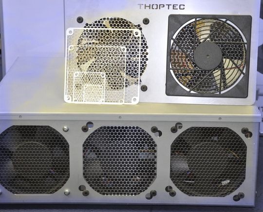 Thoptec bietet für die Lüfteröffnungen an Gehäusen ein dünnes Gitter aus Edelstahl, das für eine EMV-Dämpfung sorgt und gleichzeitig maximalen Luftdurchsatz garantiert. Diese Lösung ist für alle Anwender interessant, die einerseits an die Leistungsgrenzen des Lüfters gehen und andererseits den Kompromiss einer Abschirmung eingehen müssen. Konkret wird ein Metallgitter aus Edelstahl mit einer Stärke von 0,2 mm (Feder V2a 1.4310) zwischen Lüfter und Gehäuse montiert. Die EMV-Schutzgitter werden in Ätztechnik gefertigt mit dünnen Stegen. Alle Gitter sind in Rundloch- oder Hexagonmuster erhältlich. Dank der Hexagonstruktur lassen sich ungefähr 95 Prozent der Luftleistung am Durchlass aufrechterhalten. Die Rundlochstruktur bietet eine effizientere EMV-Dämpfung, bei etwa 85 Prozent Luftdurchlass. In einer Versuchsanordnung konnte eine Verbesserung der EMV-Dämpfung über den gesamten Frequenzbereich gemessen werden, in den Spitzen sogar bis ca. 50 Prozent. Als Standardgrößen sind Metallgitter für alle Axiallüfter von 30 bis 119 mm erhältlich.