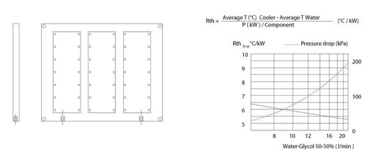 Im Diagramm 2 sind die Performance-Kurven eines Webra-Wasserkühlers ebenfalls für 3 Komponenten PrimePACK3 dargestellt. In Kombination mit entsprechend ausgelegten Wärmetauschern können bis zu etwa 4 kW Verlustleistung je Komponente abgeführt werden.