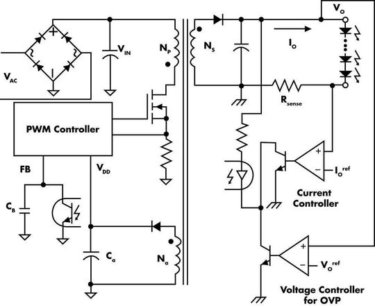 LED-Treiber Primärseitige Regelung treibt High-Brightness-LEDs mit hohem Wirkungsgrad