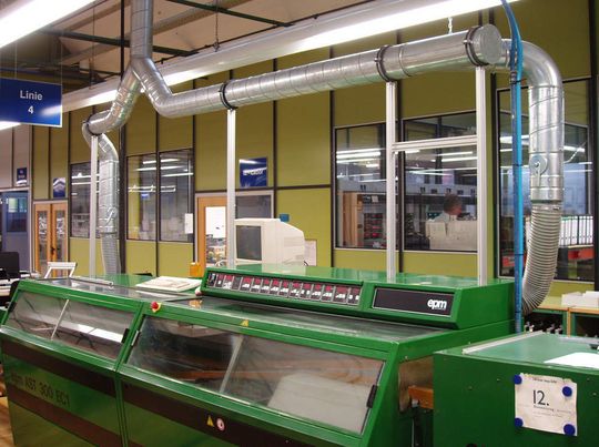 Beim Weichlöten entsteht besonders viel Krätzestaub. Auf dem Lötbad, wie es zum Beispiel beim Wellenlöten (Bild 2) verwendet wird, setzt er sich in Form von Schlacke ab und kann abgeschöpft werden. Doch eine nicht unerhebliche Menge verteilt sich auch in der Luft.