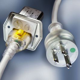 Netzkabel mit V-Lock-Verriegelung verhindern unbeabsichtigten Stromunterbruch bei Medizinalgeräten.