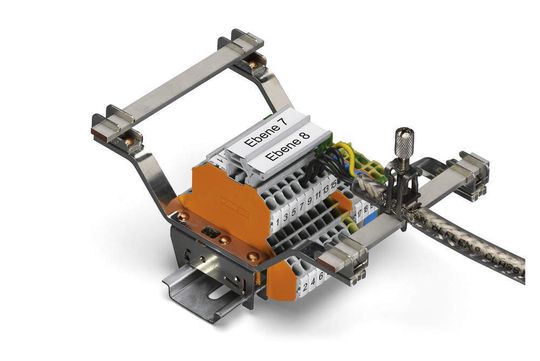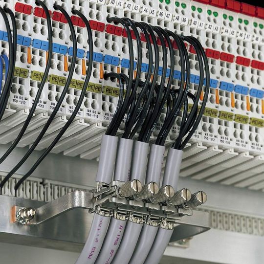 WAGO bietet mit den Serien 790 und 791 ein Schirmanschlusssystem, das unterschiedliche Befestigungssysteme und Schirmklemmbügel bis 40 mm Schirmdurchmesser bereithält. Damit kann die Schirmauflage, je nach Störbeeinflussung, sehr dicht an den eigentlichen Verbindungsstellen oder in der Nähe der Kabeldurchführung erfolgen.