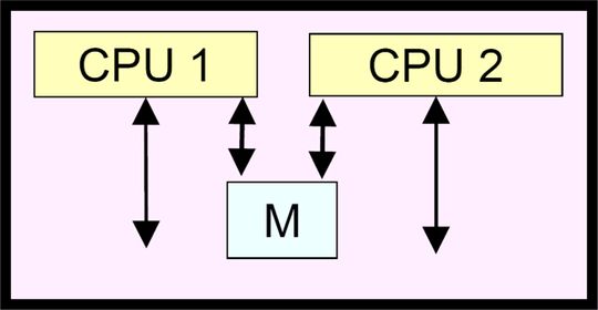 Bei dieser Architektur werden eine Cortex-R4- und eine Cortex-M3-CPU eingesetzt. Hier sind generell zwei Arten von Anwendungen möglich: Für sicherheitskritische Applikationen kann die Cortex-M3-CPU die Cortex-R4-CPU überwachen oder umgekehrt. Zusätzlich kann jede CPU eigene Aufgaben übernehmen, um so die Rechenleistung insgesamt zu erhöhen.