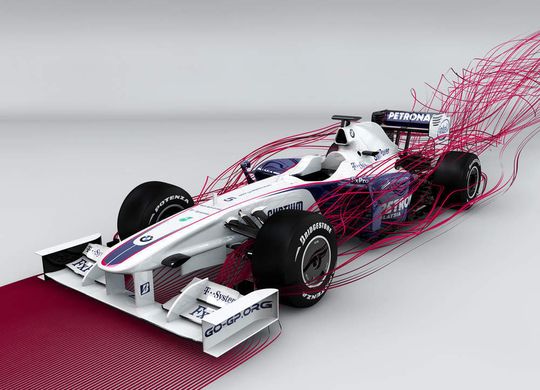 Wenn zum Beispiel ein neuer Frontflügel benötigt wird, so simuliert der Computer zuerst einige unterschiedliche Modelle. Die besten werden schließlich als Modell gebaut und die Ergebnisse der Simulation im Windkanal überprüft.
